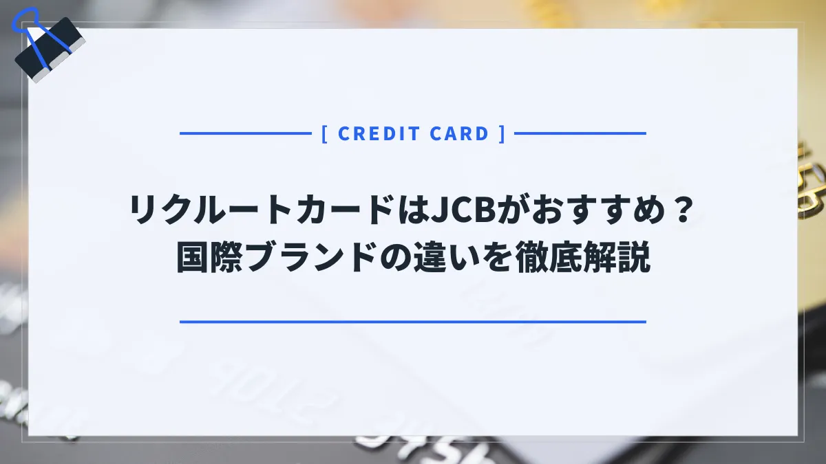 「リクルートカードで選べる国際ブランドはどれ?」「リクルートカードの国際ブランドのおすすめは?」 リクルートカードの発行を申し込むにあたって、国際ブランド選びに悩む人は多い。結論から述べると、リクルートカードの国際ブランドはJCBがおすすめだ。 JCBブランドのリクルートカードなら、海外旅行保険が最高2,000万円補償され、ショッピング保険は年間200万円補償される。さらに、最大6,000円分のリクルートポイントを獲得できる。 一方で、「JCBは加盟店が少ないから使いにくいんじゃない?」といった不安もある ...