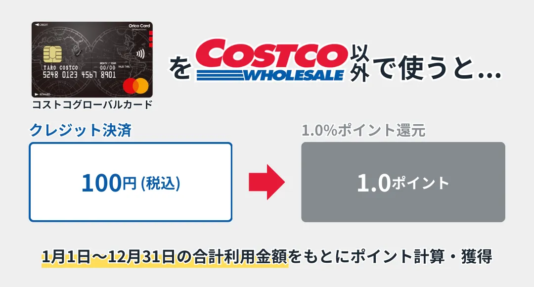 - ①コストコ以外ではポイントが貯まりにくい(還元率1.0%)