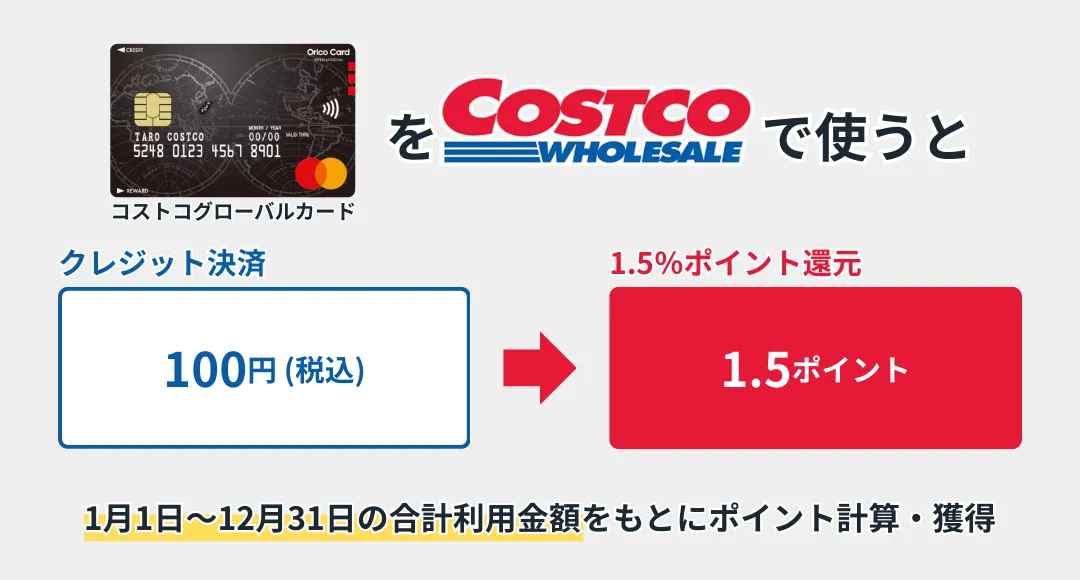 - コストコグローバルカードはコストコで1.5%ポイント還元