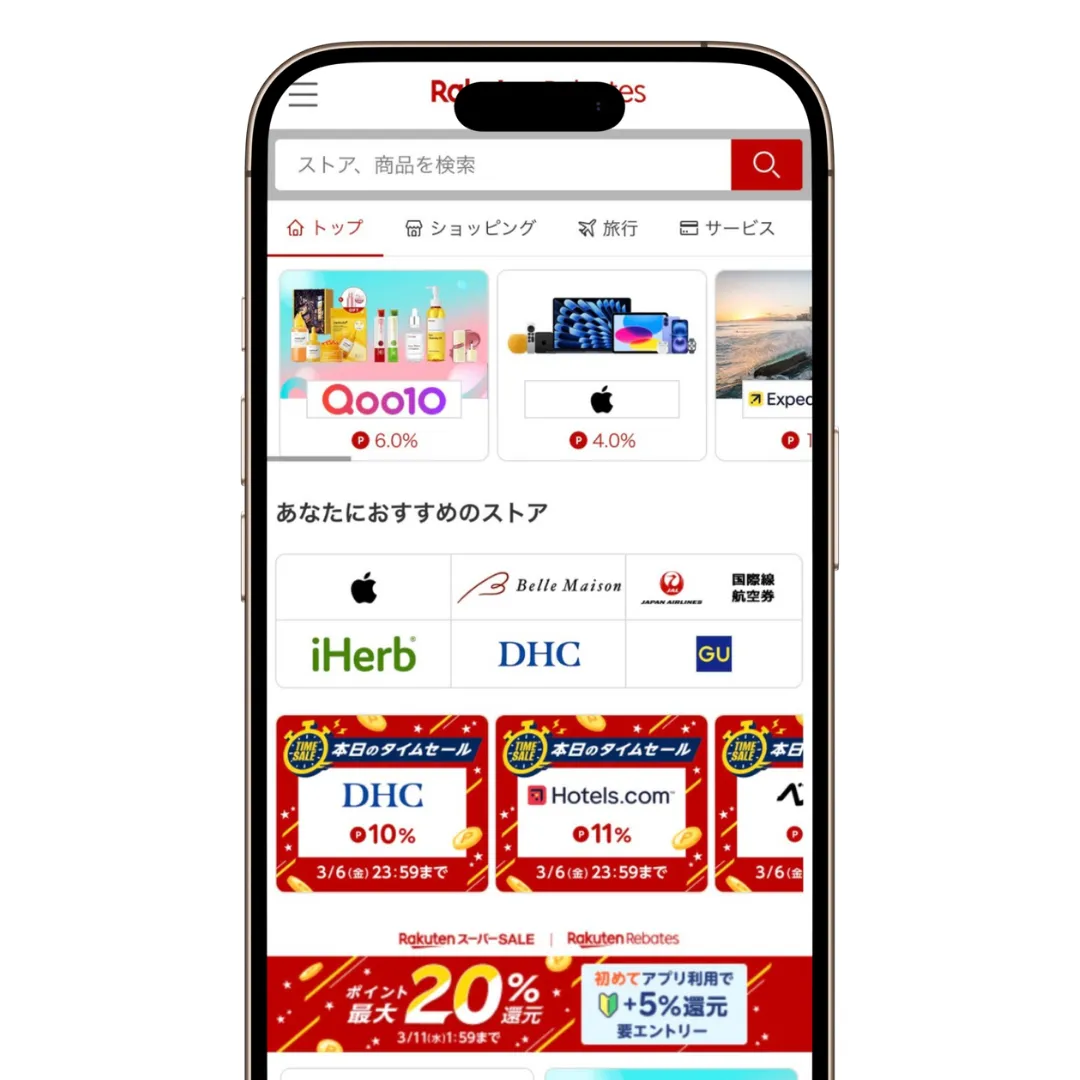 コンビニ・飲食店以外の店舗やサービスでポイントをたくさん獲得したいなら、楽天カードを発行しよう。さまざまなブランドが登録している楽天リーベイツを経由すれば、対象ブランドにおけるポイント還元率が大幅にアップする。