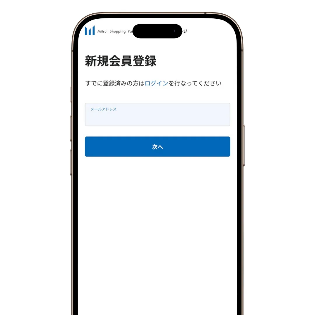 最後に、登録したメールアドレスとパスワードで三井ショッピングパークポイントのメンバーページにログインすれば、ららぽーとのポイントカードが完成だ。
