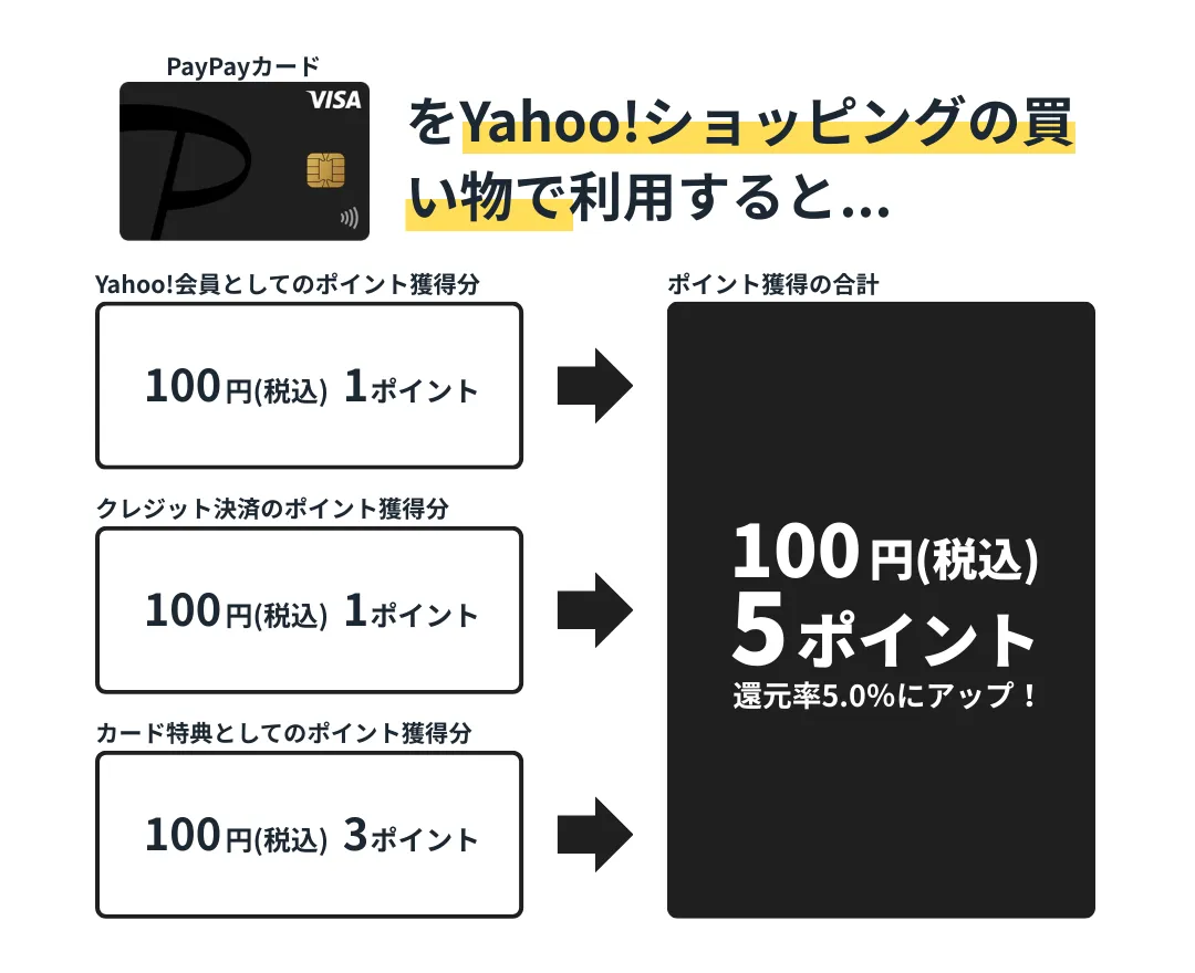 - Yahoo!ショッピングの買い物はPayPayカードを使えば5.0%以上ポイント還元