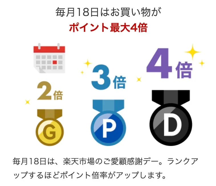 さらに、楽天市場では毎月0と5が付く日(5日・10日・15日・20日・25日)のポイント還元率が+3倍になるなど、ポイントアップキャンペーンが何かと多い。6ヶ月間で40万円以上のクレジット決済を使えば、楽天会員のランクがダイヤモンドにアップし、毎月18日はさらに+3.0%ポイントアップする。